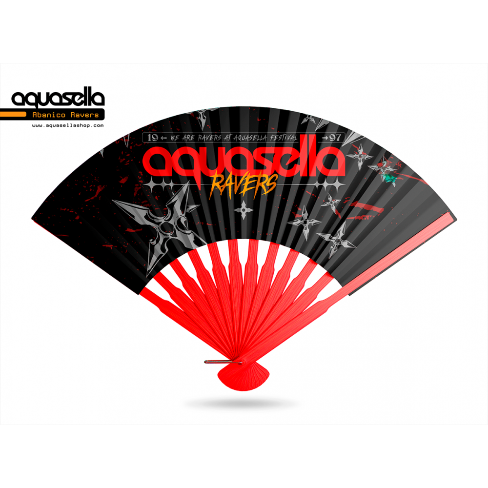 Abanico ravers en color negro y varillas en rojo. Ligero y fácil de llevar